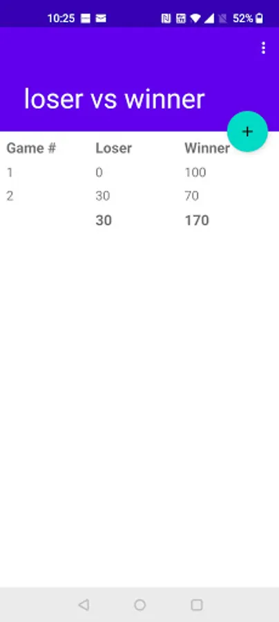 - No manual entries (except for the played points) -> automatically calculates the score for both teams