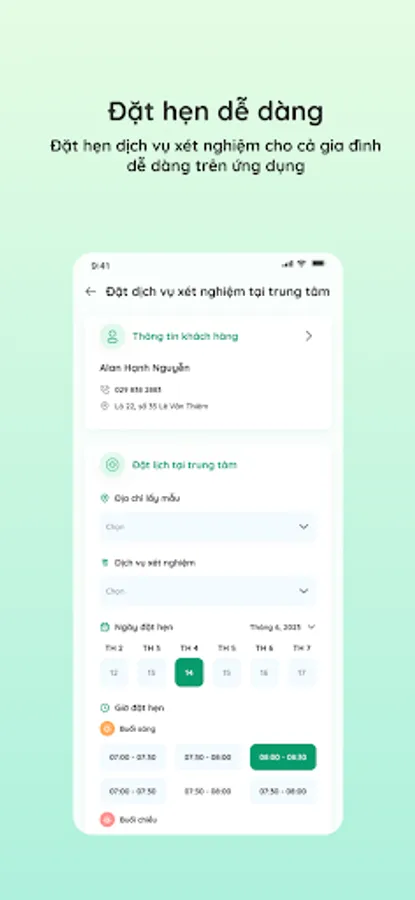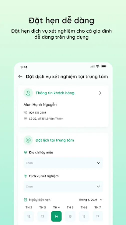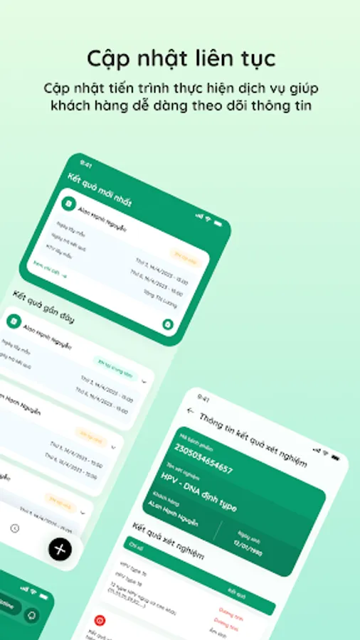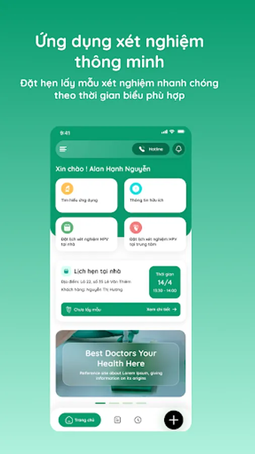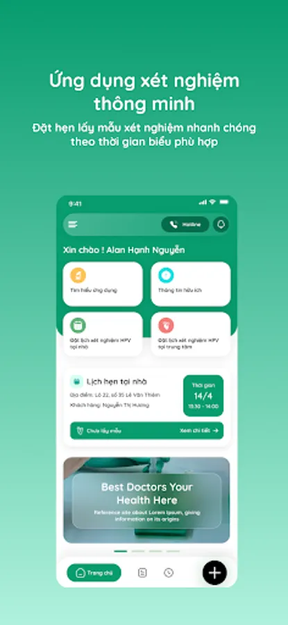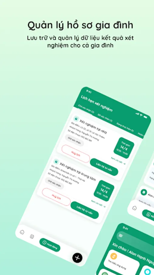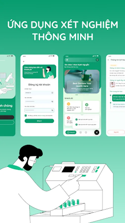 GreenLab is a smart medical application from Green Lab Test Center System with modern technology platform, constantly updated and optimized features. The application brings convenient experiences to customers with outstanding features: online appointment booking, appointment management, detailed tracking of sample journey, receipt and management of test results, record management Test records for the whole family, find information related to test indicators.