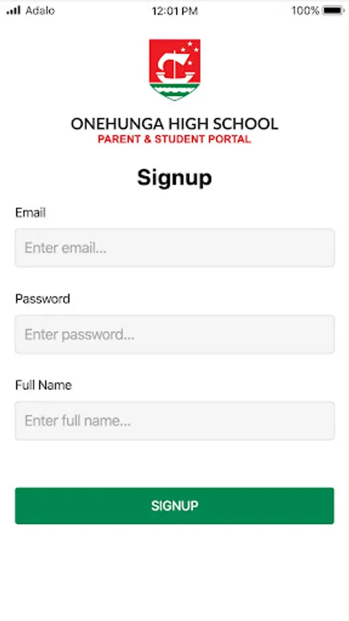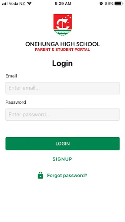 Once you download and install the app you will be asked to register with your name and email. For further information contact the school by email something@ohs.school.nz