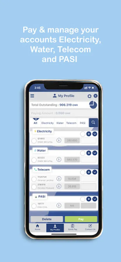 ONEIC Bill & Pay App allows you to view and Pay your Utility Bills for Electricity, Water, Telecom and Recharge your Prepaid Accounts. All you need to know is your account number from your bill, then you can view and pay your bill, also you can view detailed payment history.