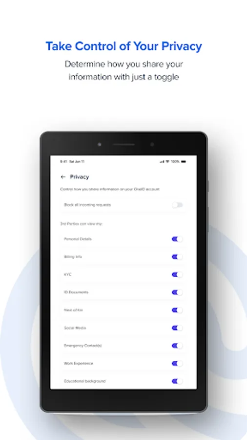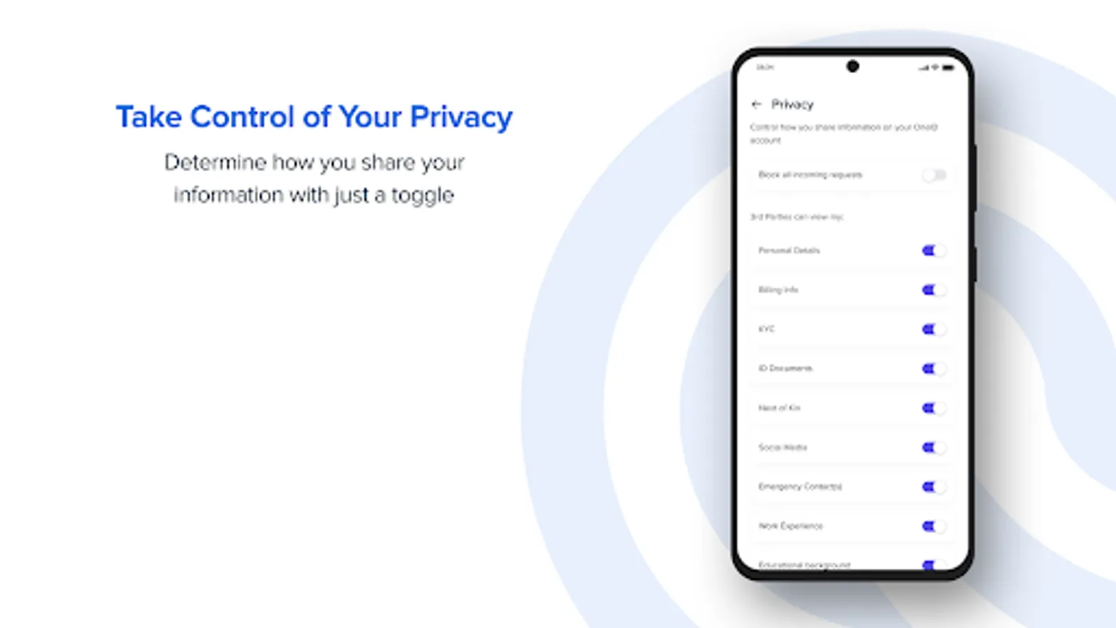 Whatever you need to do online that requires your ID, we got you covered in a 1-click style across all business platforms without compromising your privacy and data security.