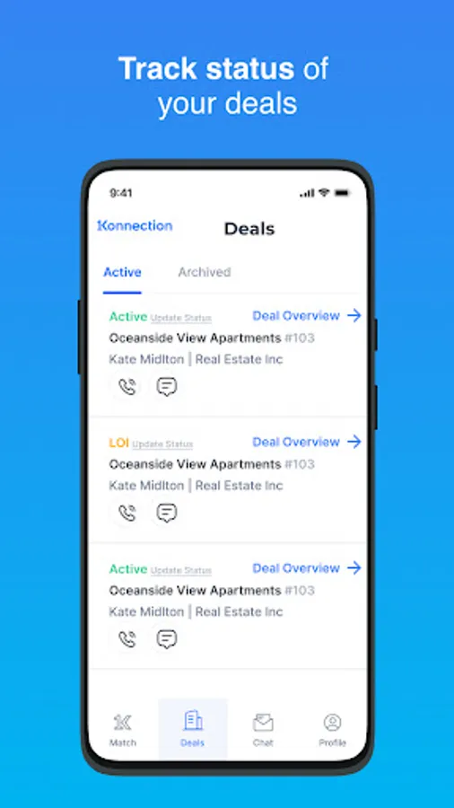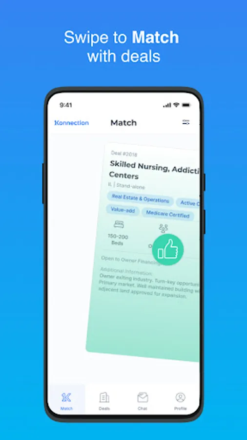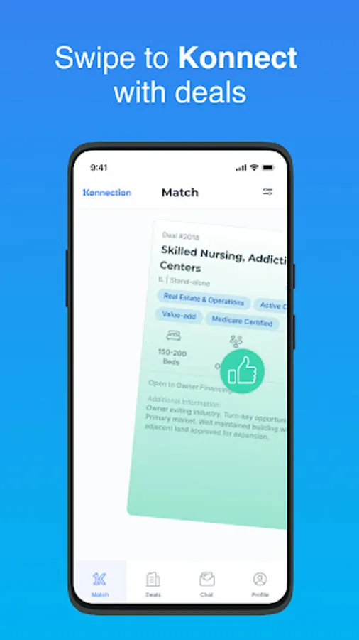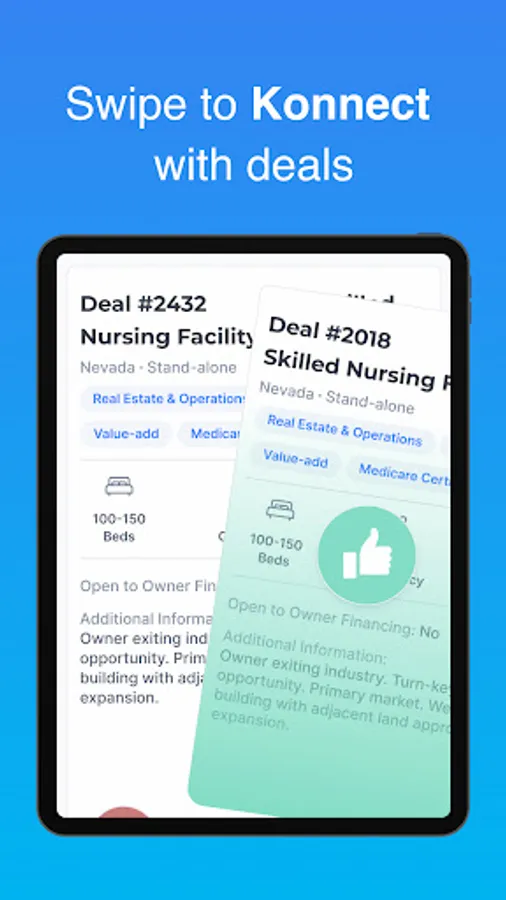1Konnection is a confidential marketplace specifically designed to help owners and operators discover and manage senior housing and healthcare real estate opportunities in a more efficient, educated manner. Our platform empowers industry professionals to get in front of the right deals at the right time, so they no longer miss out on potential deal-making opportunities.