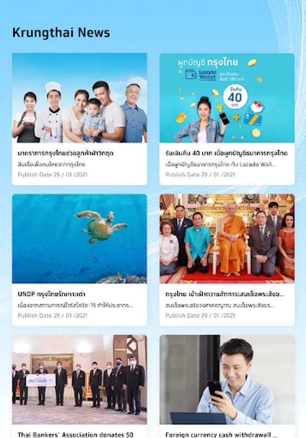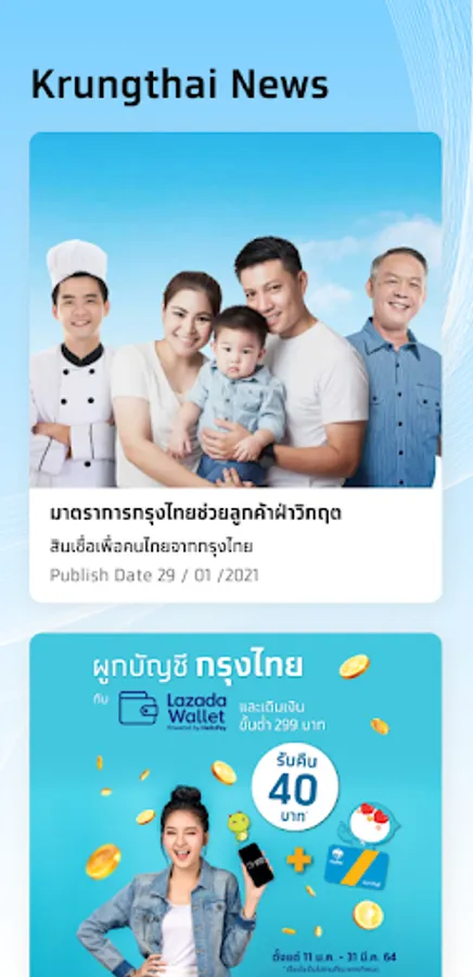Enjoy the Bank's activities through ONE Krungthai, which is the center of activities of Krung Thai Bank from online activities. To offline activities Allowing users to not miss the opportunity to participate in every activity.