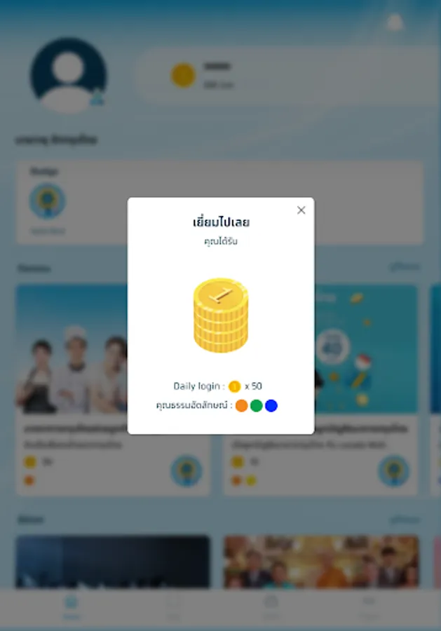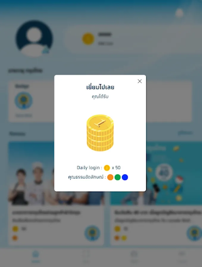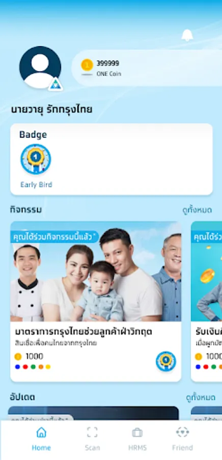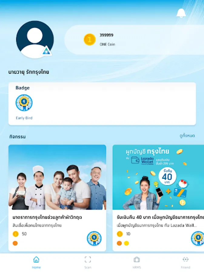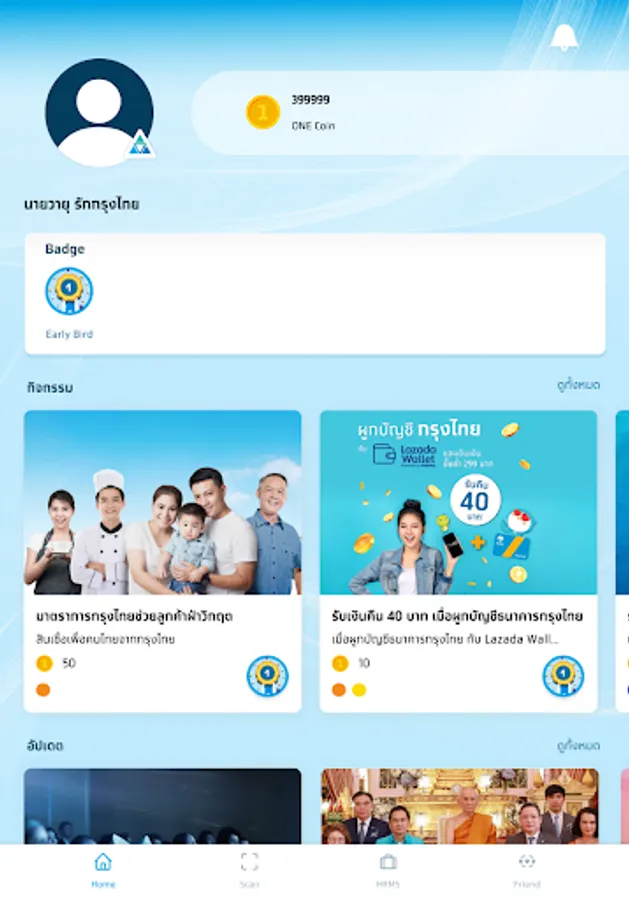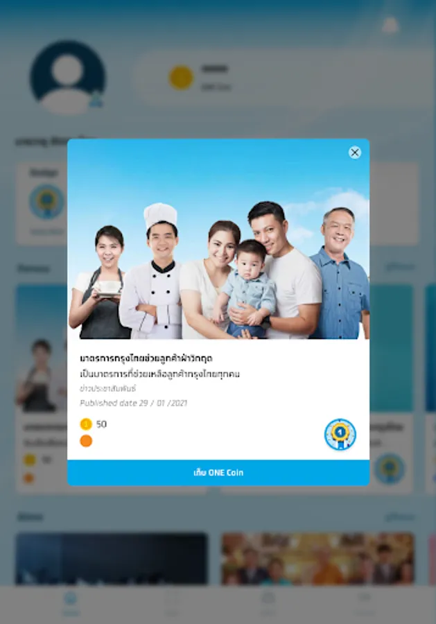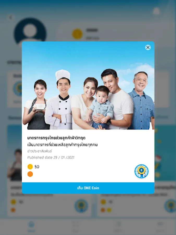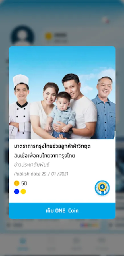 Receive ONE Coin, Badge and collect other rewards through the ONE Krungthai application when users have attended various activities or read the Bank's news.
