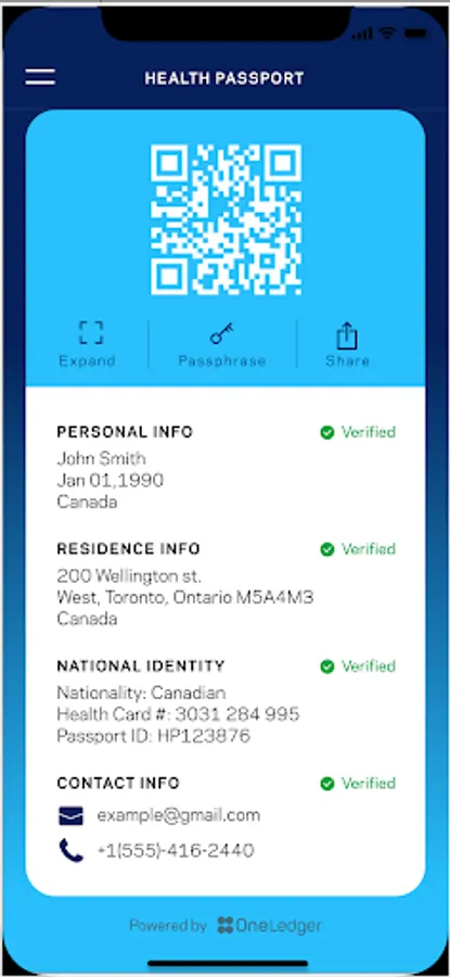 The Health Passport is a health identity that manages data on viruses for consumers to safely enter venues. It's built on an emerging technology and can ensure that the data is incorruptible and immutable.