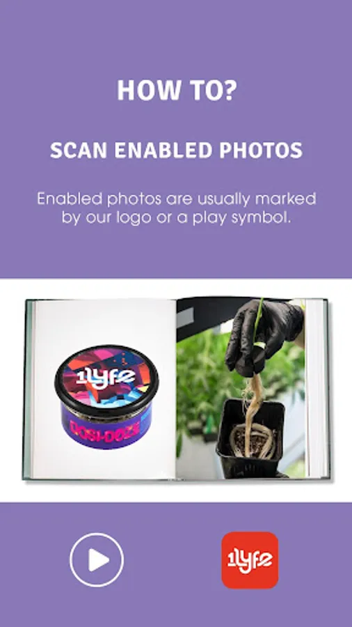 When you see the 1lyfe logo or a play symbol on our artwork, booklets or flyers, that means the image is 'scannable' and can be used by this app to unlock the corresponding video.