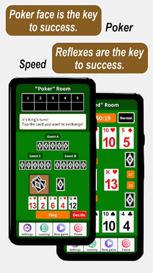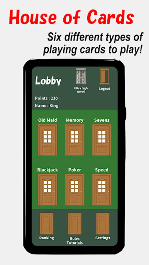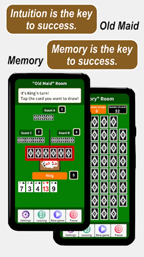 “Old Maid”, “Memory”, “Sevens”, “Blackjack”, “Poker”, “Speed”