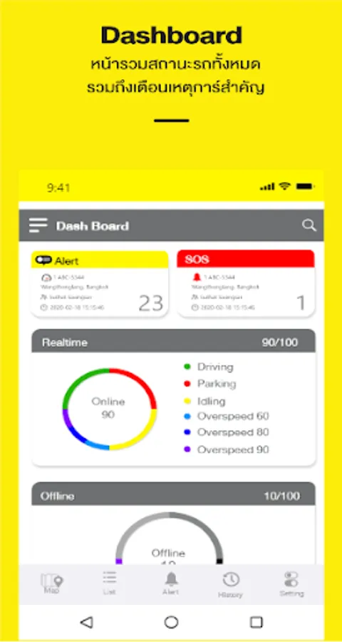 Travel report, over-speed warning, alarm when entering-exiting the station, view vehicle status offline, daily, daily, 3 days, 5 days and 7 days, report traveling over 4 hours, report over speed All travel Including oil usage reports Can send a lock-unlock command to the car And cutting the starter