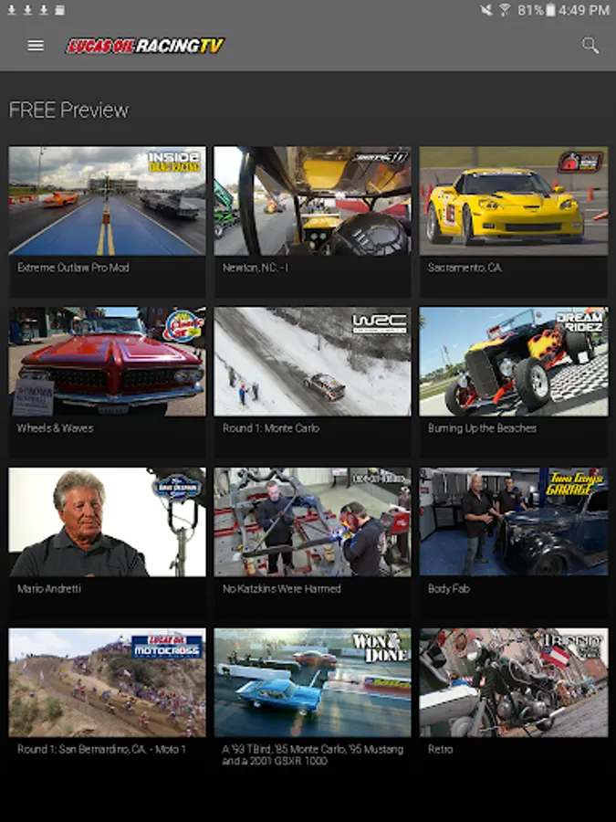 Lucas Oil Racing TV features on-demand motorsports and automotive programming 24 / 7. Choose from hundreds of shows in our library of content or sit back and let us do the work when you tune in to "Cruise Control” and find your favorite shows already playing. Don't miss our exclusive LIVE feeds from some of the racing world's biggest events!