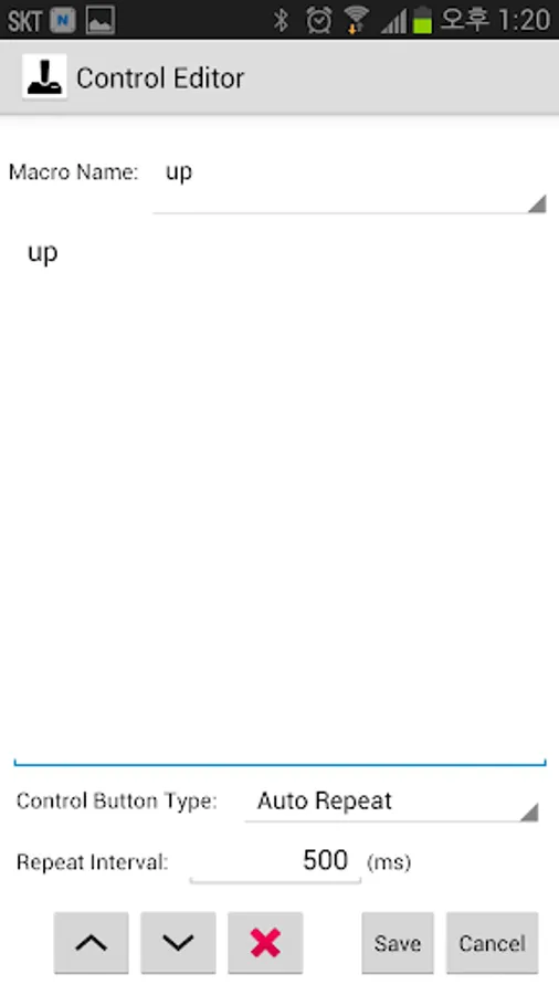 ex) up<% sleep:1000 %>down<% sleep:2000 %>left<% sleep:3000 %>right