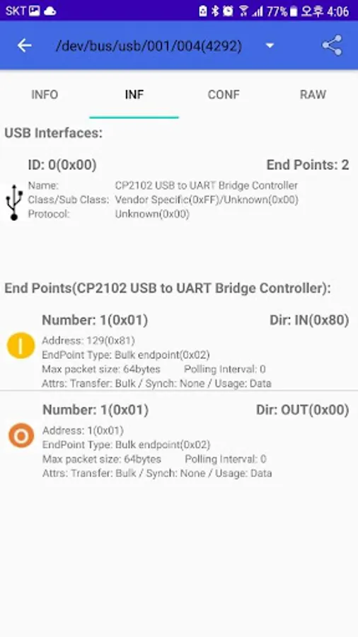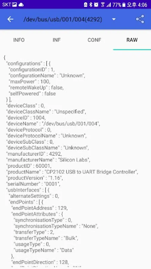 Enumerate the USB devices connected to the smart phone, and provide usb device descriptors of selected USB equipment.