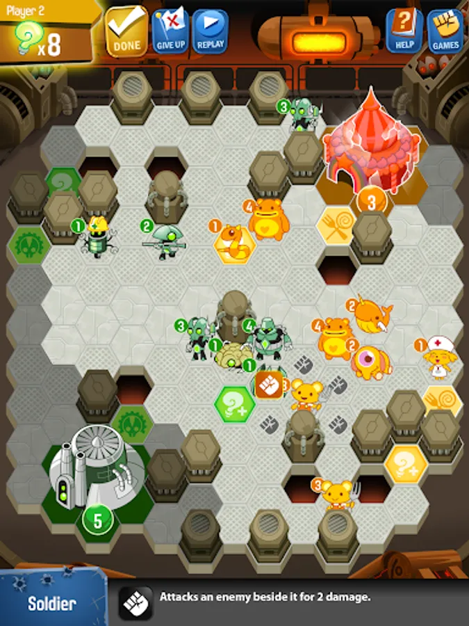 Race to destroy the enemy base in this quirky, turn-based strategy game. You can take on your existing Google Play friends, or get skill-matched with our league matchmaking & ranking system. There are four races to choose from, each with its own cast of characters and a combat specialty to master. Will you side with the seafaring Scallywags, cybernetic Feedback, vitamin-rich Veggienauts, or the aptly-named Adorables?