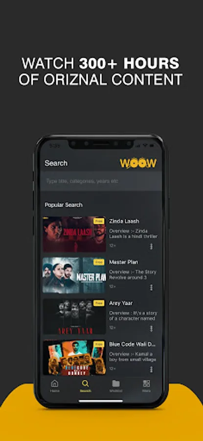 WooW brings you the most unique content of the highest genre from all over the world! With a vast range of regional content like Bengali, Tamil, Telugu, Punjabi and many others, WooW will satisfy everyone's content needs with just one simple subscription! WooW has an Exclusive content library featuring originals, Films, Short Film, Various Language Content and more.