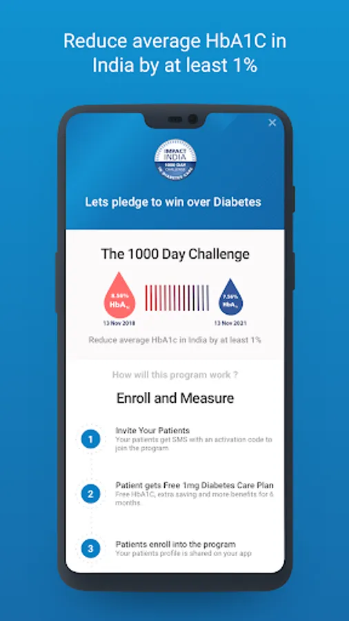 - Impact India - 1000 day challenge partner doctors also use this app to reduce the burden of Diabetes