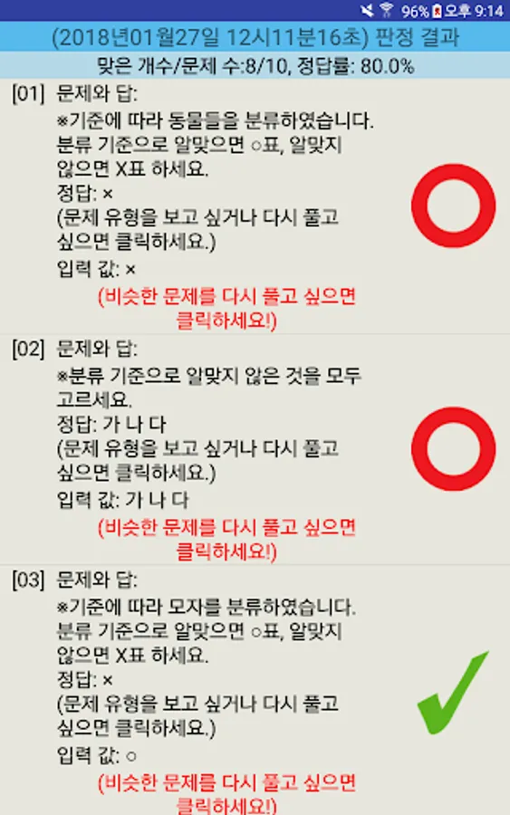 5. When you have completed the examination is automatically graded, the exercise information will be applied to the statistics.