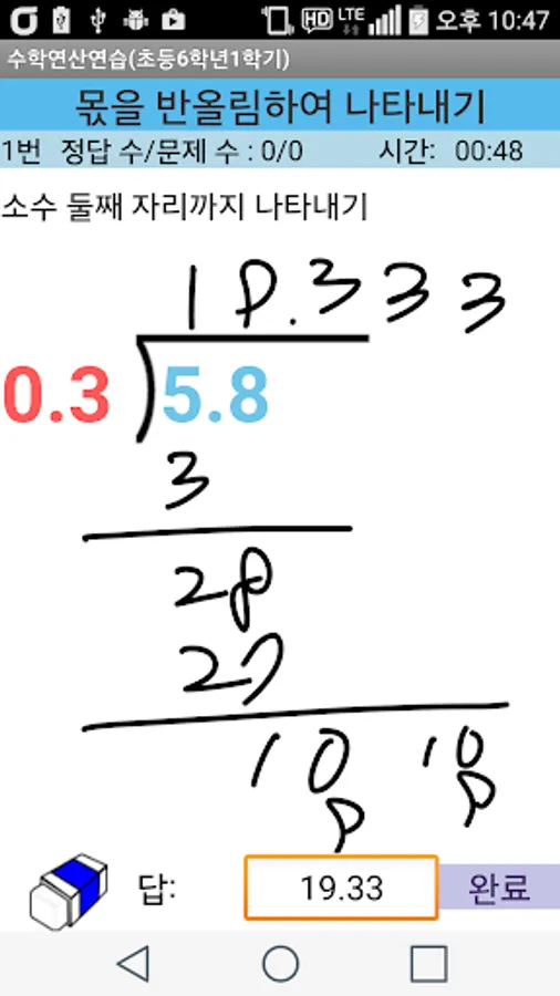 (6th grade semester fractions and decimal divisions are hard to calculate on small smartphones, so I think I need a practice book.)
