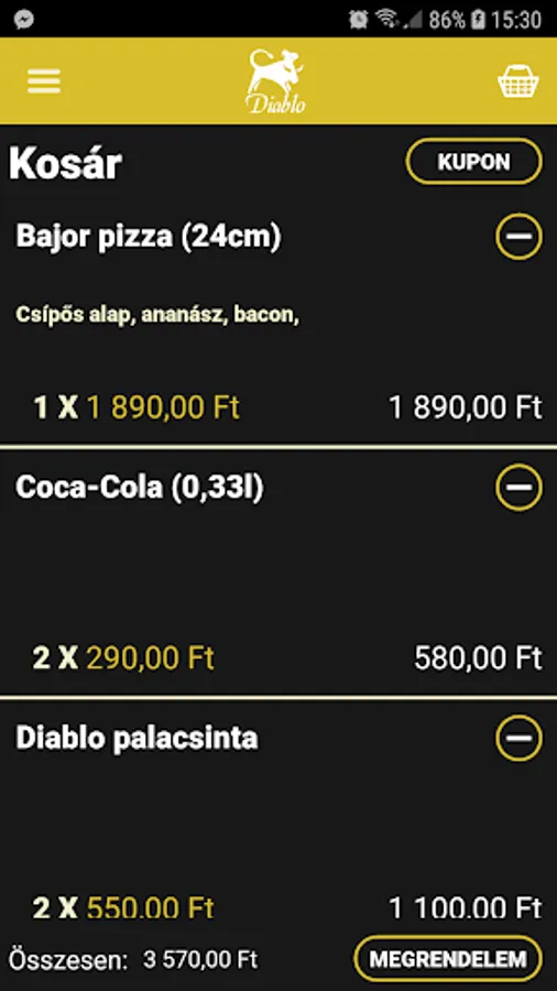 Order quickly and easily from Diablo Pizzeria in Miskolc.