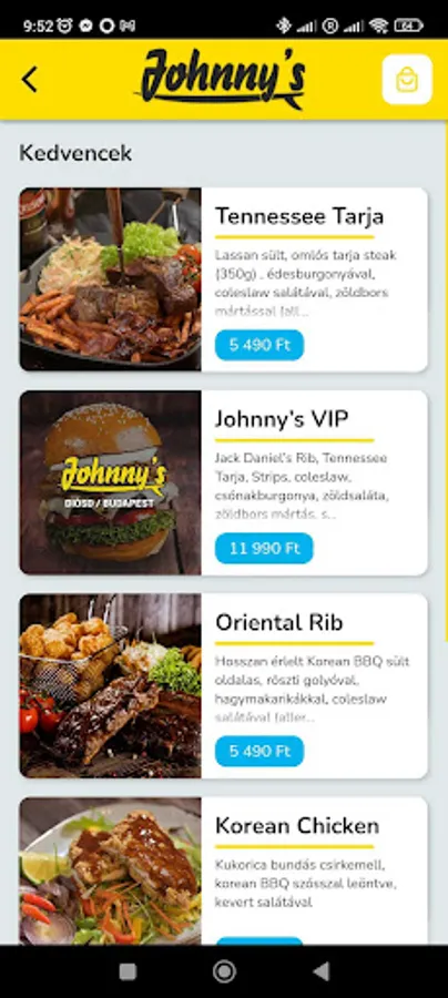 Order quickly and easily from Johhny's Bistros in Budapest!