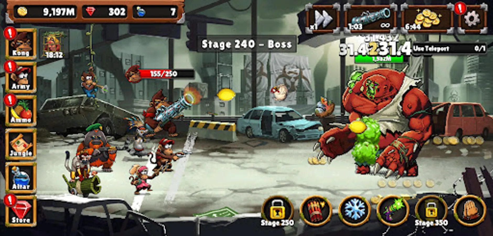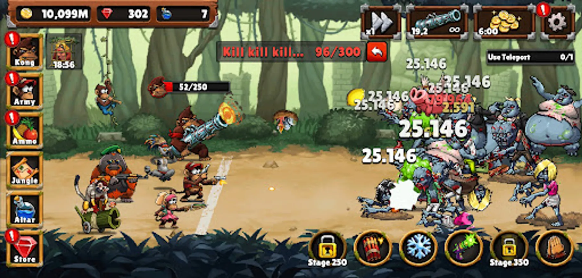 In Apes vs. Zombies, you'll help our chief ape "Kong" defend his kingdom against the impending zombie invasion and resque your girlfriend Jane. What are you waiting for? Grab your bazooka and round up your monkey friends to give the zombies a good run for their money and free your Jane.