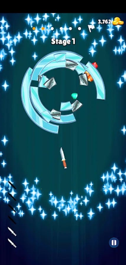 1. Aim the target, tap the screen and hit the glass shapes. The more you hit, the more knives you can obtain. The more coins you will get. The more possibility to win.