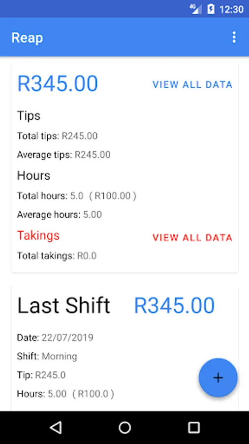 Reap is an application that helps waitrons track their earnings through out the month. The user inserts their hours that they have worked and the amount of tip that they have received during the shift and the application works out the balance.