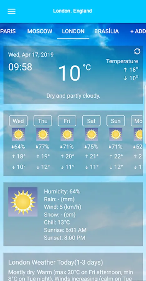 The Weather Forecast, one of the best weather application on store, which has accurate weather information for anytime and everywhere. This app can provide you a detailed weather forecast of today, tomorrow, even next ten days, wherever you are!
