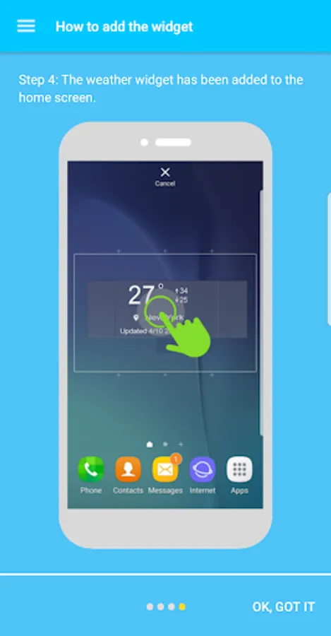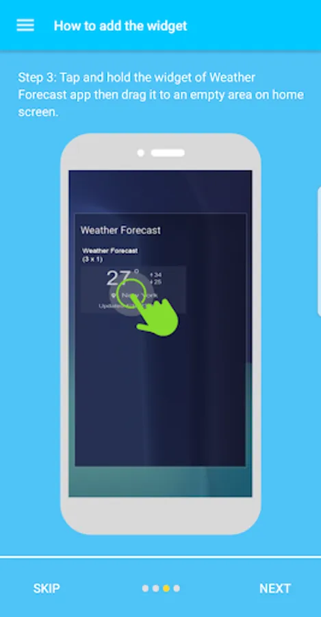 Easily check the current weather info via a simple widgets in 3*1 sizes.