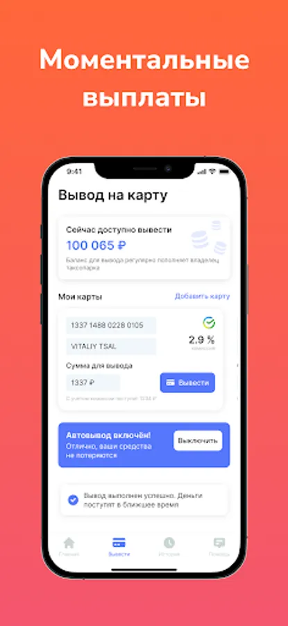 • Connect auto-withdrawals to the card when a certain balance is reached. For example, when you reach a balance of 500 rubles, they will automatically go to your card