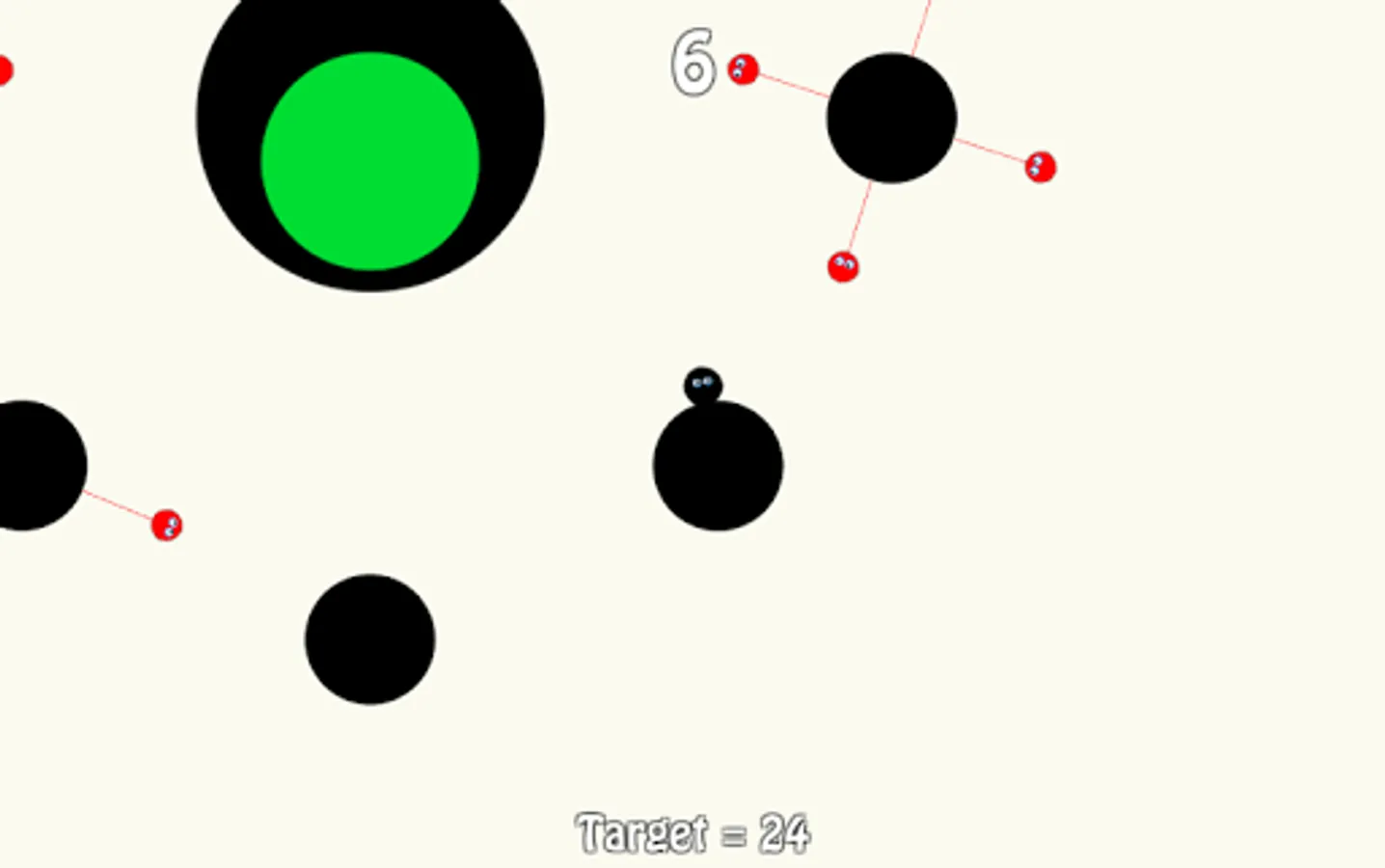 Get the black furry to the goal with the correct amount of points without disturbing the red furries.