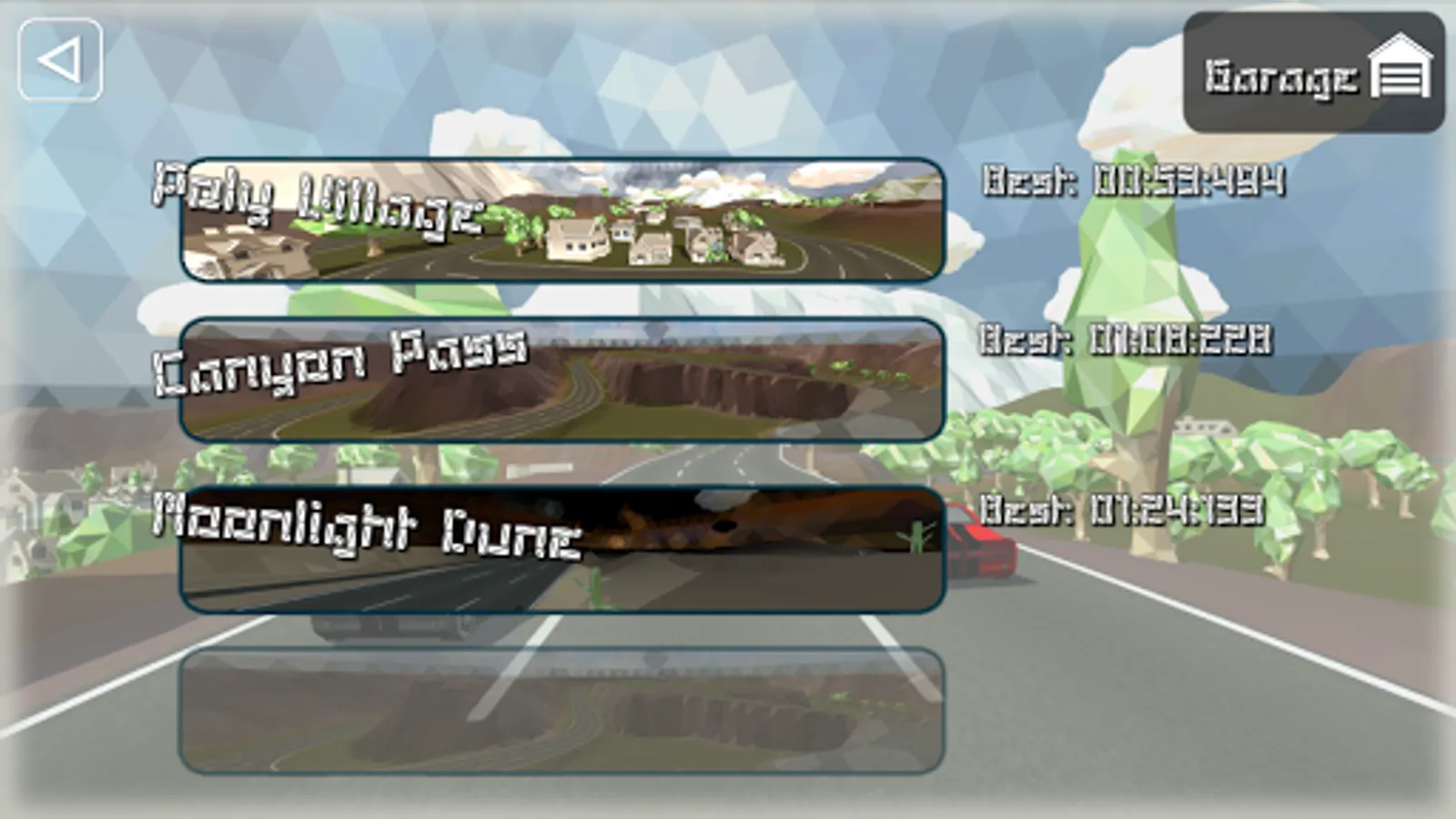 Drive around the cool poly tracks with beautiful poly scenery