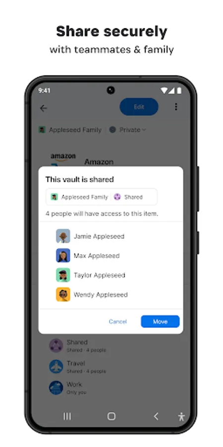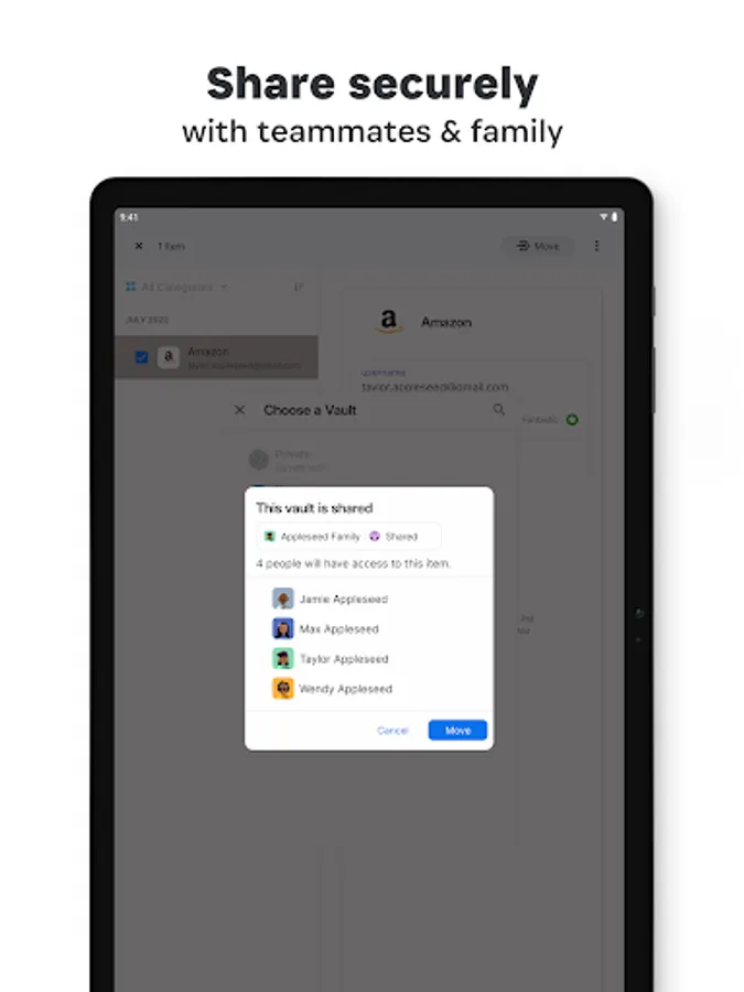 1Password for Android has full support for team and family accounts. It’s never been so easy to share the simple security of 1Password with those you work and live with.