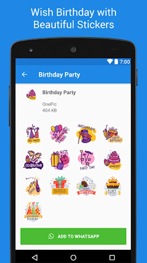 This is awesome way to say ‘Happy Birthday’. This “Birthday Stickers for Whatsapp” free Stickers pack app specially created for Whatsapp. You just have to add different category of Stickers Packs from given list.