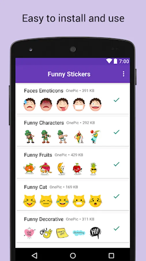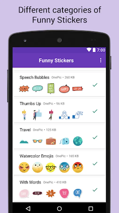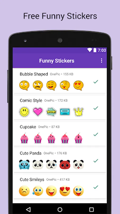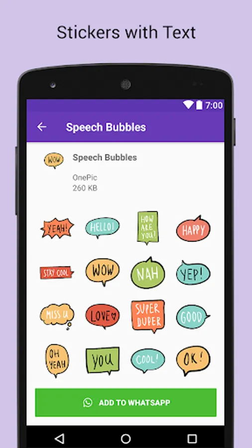This is awesome way to say ‘Hello’, ‘I miss you’. This “Funny Stickers for Whatsapp” free Stickers pack app specially created for people who are fond of chatting. You just have to add different category of Stickers Packs from given list.