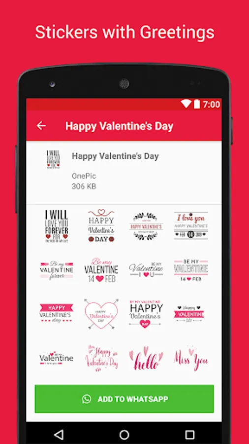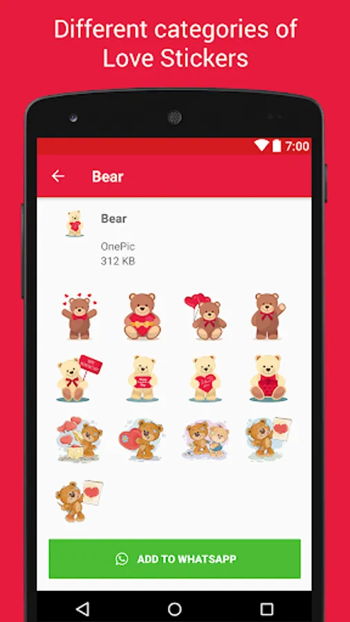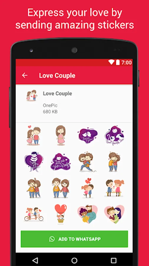 This is awesome way to say ‘I Love You’. This “Love Stickers for Whatsapp” free Stickers pack app specially created for Lovers. You just have to add different category of Stickers Packs from given list.