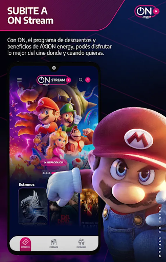 We welcome you to ON Stream, Axion Energy's new entertainment platform that we designed especially for you and from where you can enjoy the best movie premieres.