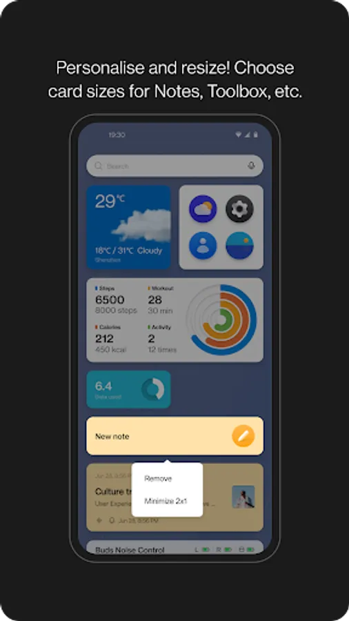 4. Step Counter or Health card: Count daily steps to keep track of your activity. When your device is connected to OnePlus Watch, you get additional data from Health app for workout, calories burnt, & activity period along with step count.