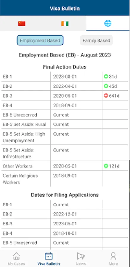 5. Visa Bulletin: Stay up-to-date with the latest Visa Bulletin directly from the app. No need to search elsewhere for the information you need. Get easy access to priority date cut-offs and visa availability, helping you plan your next steps with confidence.