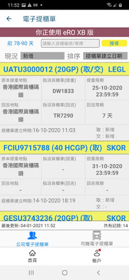 - Pick up laden containers/ return empty at terminals/ depots by showing eROs displayed on the app (in QR Code format) without holding paper release orders.