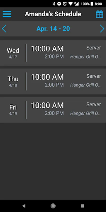 Allows employees to download and view their work schedule created in the onePOS Restaurant POS system.