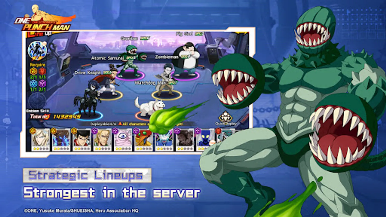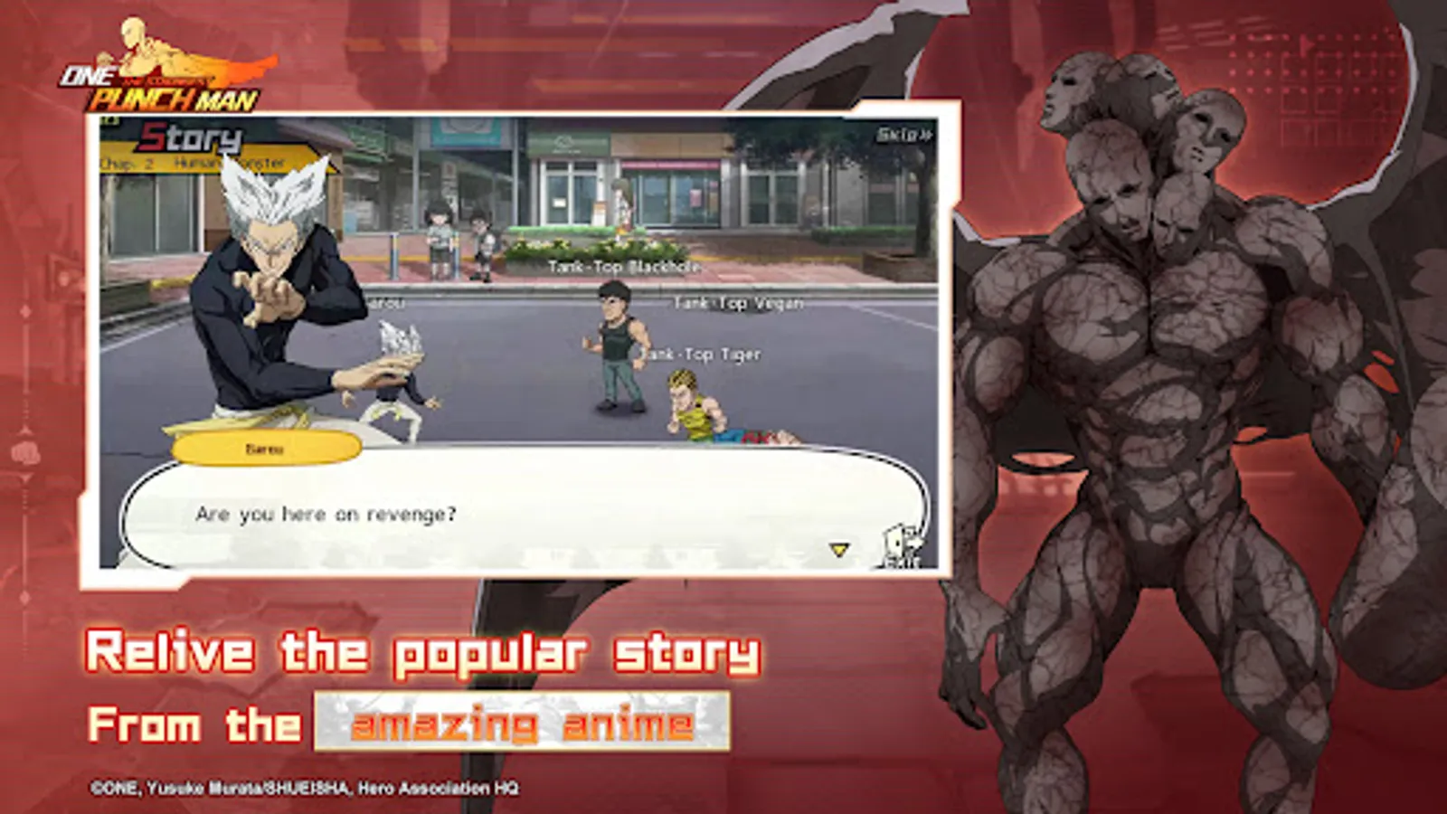 "ONE PUNCH MAN: The Strongest" is a turn-based mobile RPG, officially authorized by the sensational Japanese anime "ONE PUNCH MAN"! Supervised by Shueisha's production committee, ONE PUNCH MAN: The Strongest has fully restored the world and stories from the original anime! Cities are under attack by monsters! Citizens are seeking shelter, and they need help! It's time for the Heroes of the Association to come to their rescue! Follow Saitama and fight bravely against monsters. Our goal is not the pursuit of fame, but that of protecting the innocent and helpless.