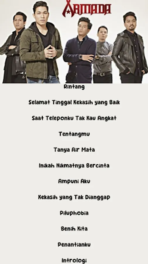 Armada Band Mp3 Music is a music player application with a complete collection of Armada Band songs and can be played offline or online. The advantages of downloading this Armada Band Mp3 Music application: