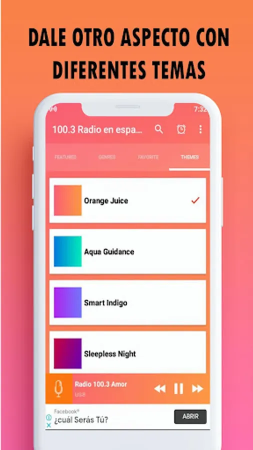 In your new radio application "100.3 fm radio station en espanol free" you can listen to stations.
