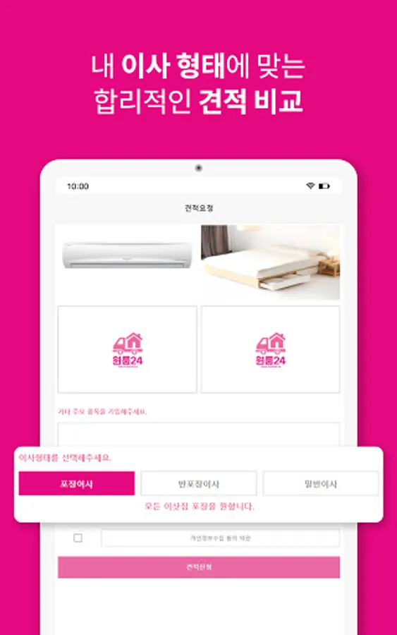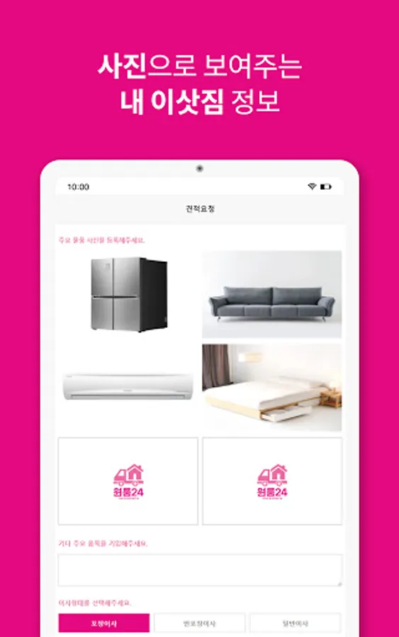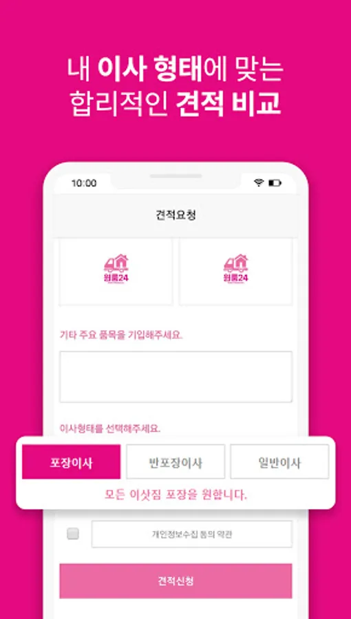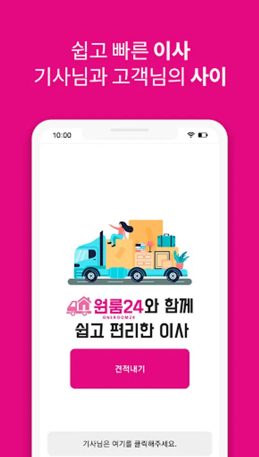 Oneroom 24 is a moving app that supports simple transactions between customers and yongdal knights.