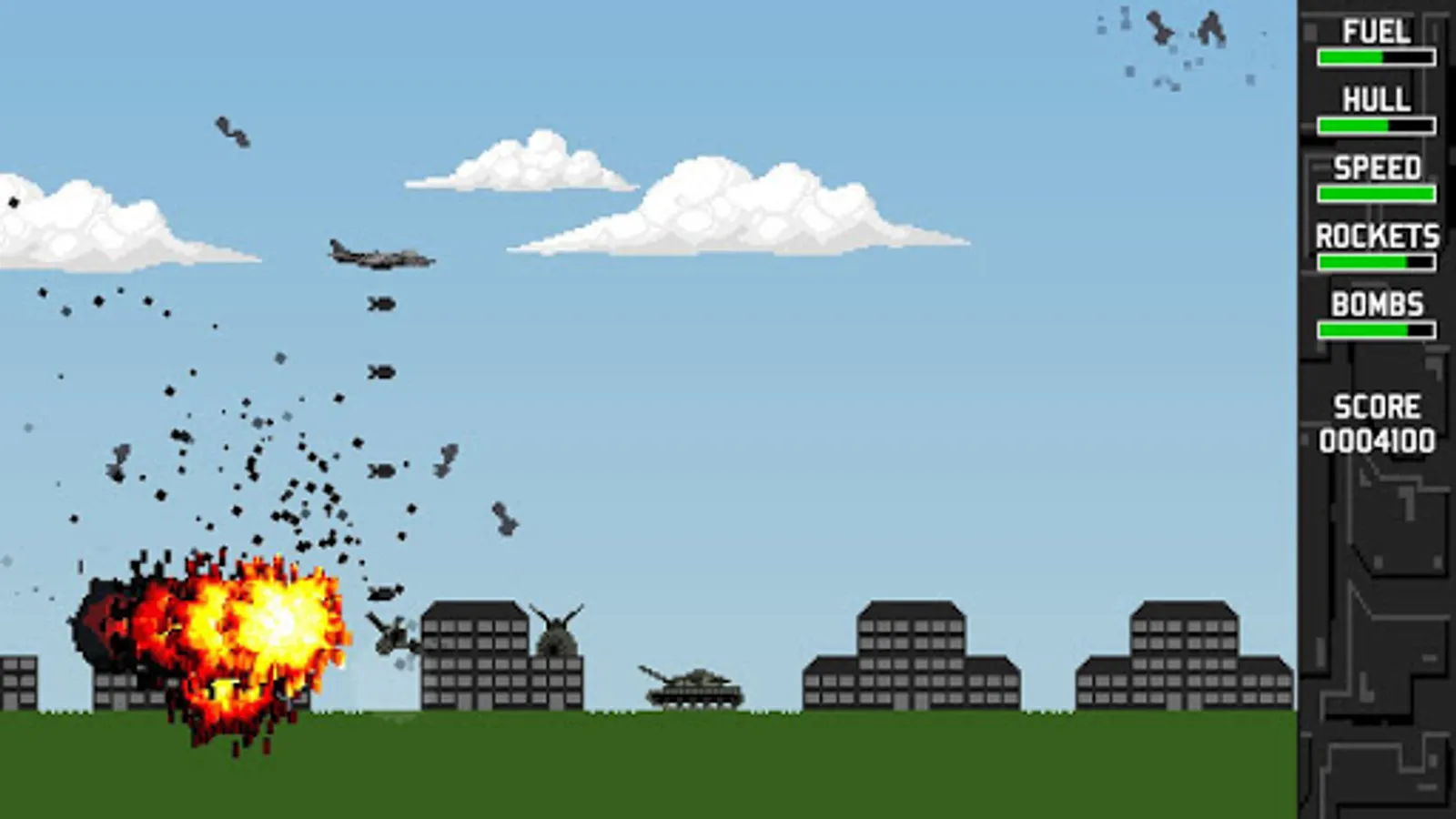 You will be under almost constant attack from the air and from land-based anti-aircraft fire. You may attempt to shoot down the enemy planes and the land-based weapon with your short-range rocket fire. You may also bomb artillery as you fly over the island, but be careful to keep enough bombs in reserve to wipe-out the enemy base.