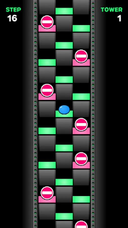 Scramble up the 100 steps to the top of the tower. Move across the green blocks and avoid the red No Entry signs.