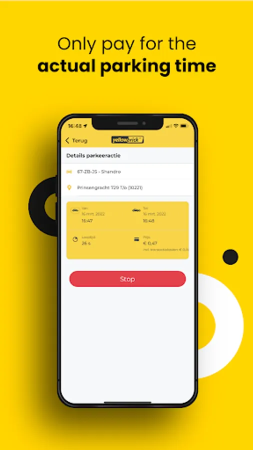 With the Yellowbrick parking app you only pay for the actual parking time. You can easily set your end time and get free parking reminders for ongoing parking actions. Pay your parking costs afterwards via the specified invoice.