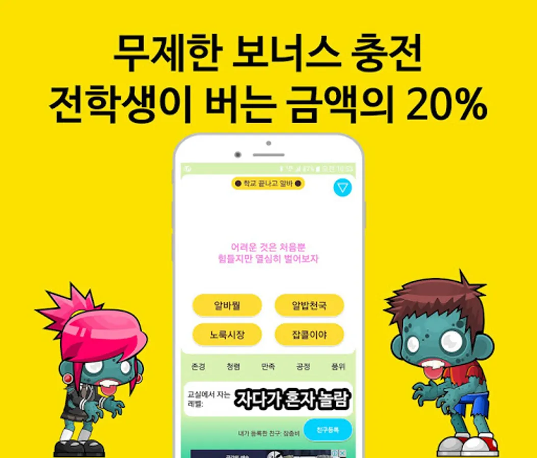 2. 채굴기 같은 무제한 자동 보너스 충전 - 전학생을 모집하면 전학생이 버는 금액의 20%씩 보너스로