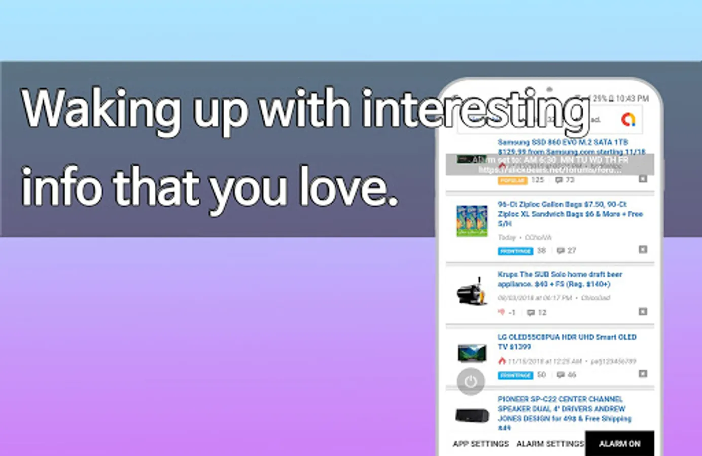 Easy, Simple. Listen Social News, Board, Sport, Hot deals Info, Gossip as alarm