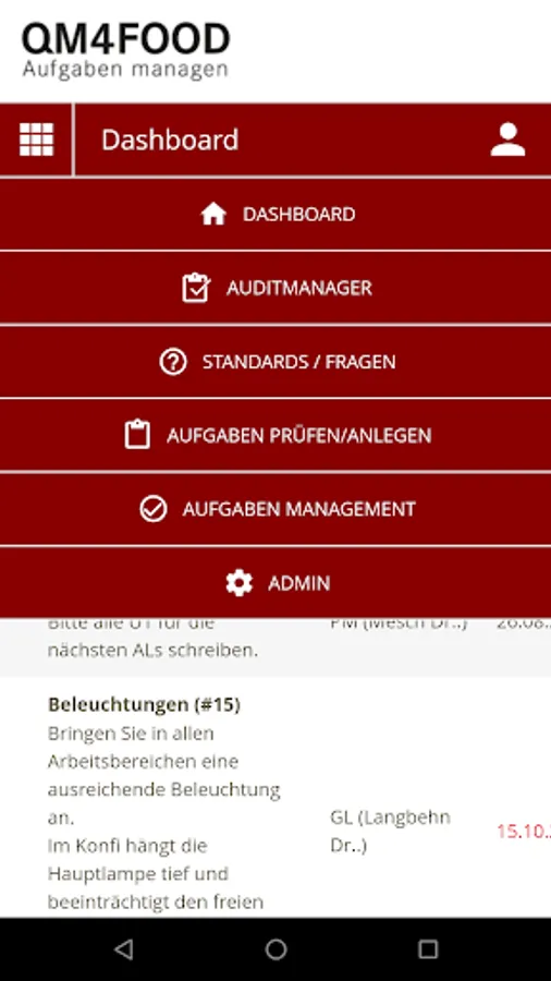 QM4FOOD is the audit and task management tool for the quality manager in the food industry. It guides you through the requirements of the food standards in a structured manner based on questionnaires and pre-formulated job descriptions, but also offers you the possibility to create your own internal tasks, to control them easily, to implement them and to document them.