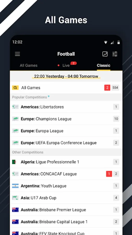 Bee Sports covers almost any live scores and stats of football leagues in the world (more than 210 countries and regions). You can follow your favorite matches through the favorites function, such as UEFA Champions League, English Premier League, La Liga, Bundesliga, Serie A, CONMEBOL Libertadores, and Campeonato Brasileiro Série A. You can also add your favorite teams to favorites, for example: Manchester United, Chelsea, Real Madrid and Barcelona.